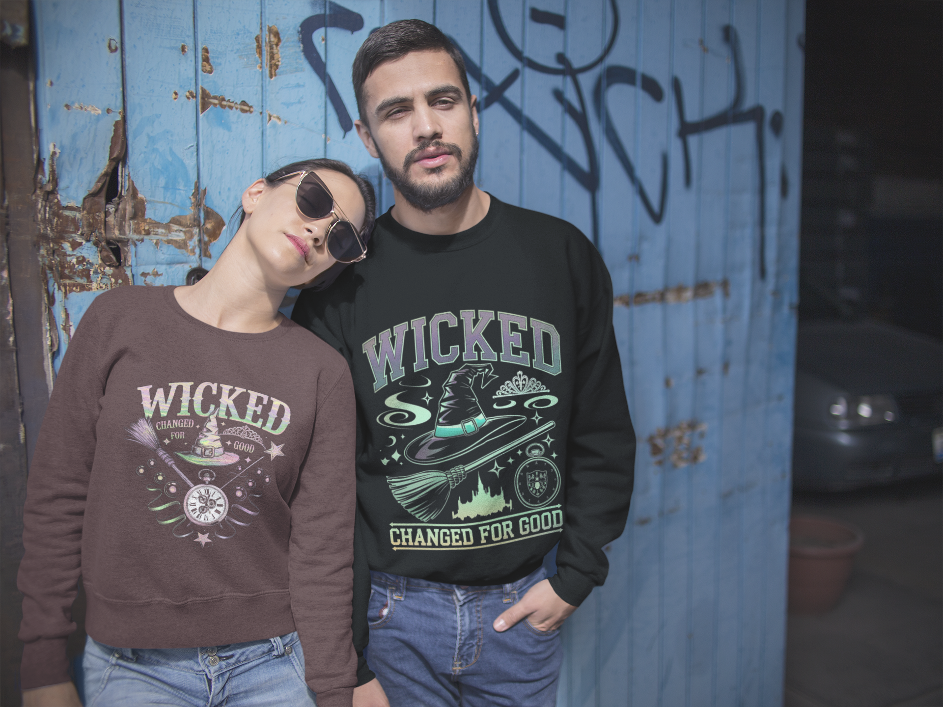 Step into the spotlight with this “Changed for Good” sweatshirt inspired by the magic of Wicked. Perfect for everyday adventures or bold statements, it’s a reminder that you can always rewrite your story—and look great doing it.