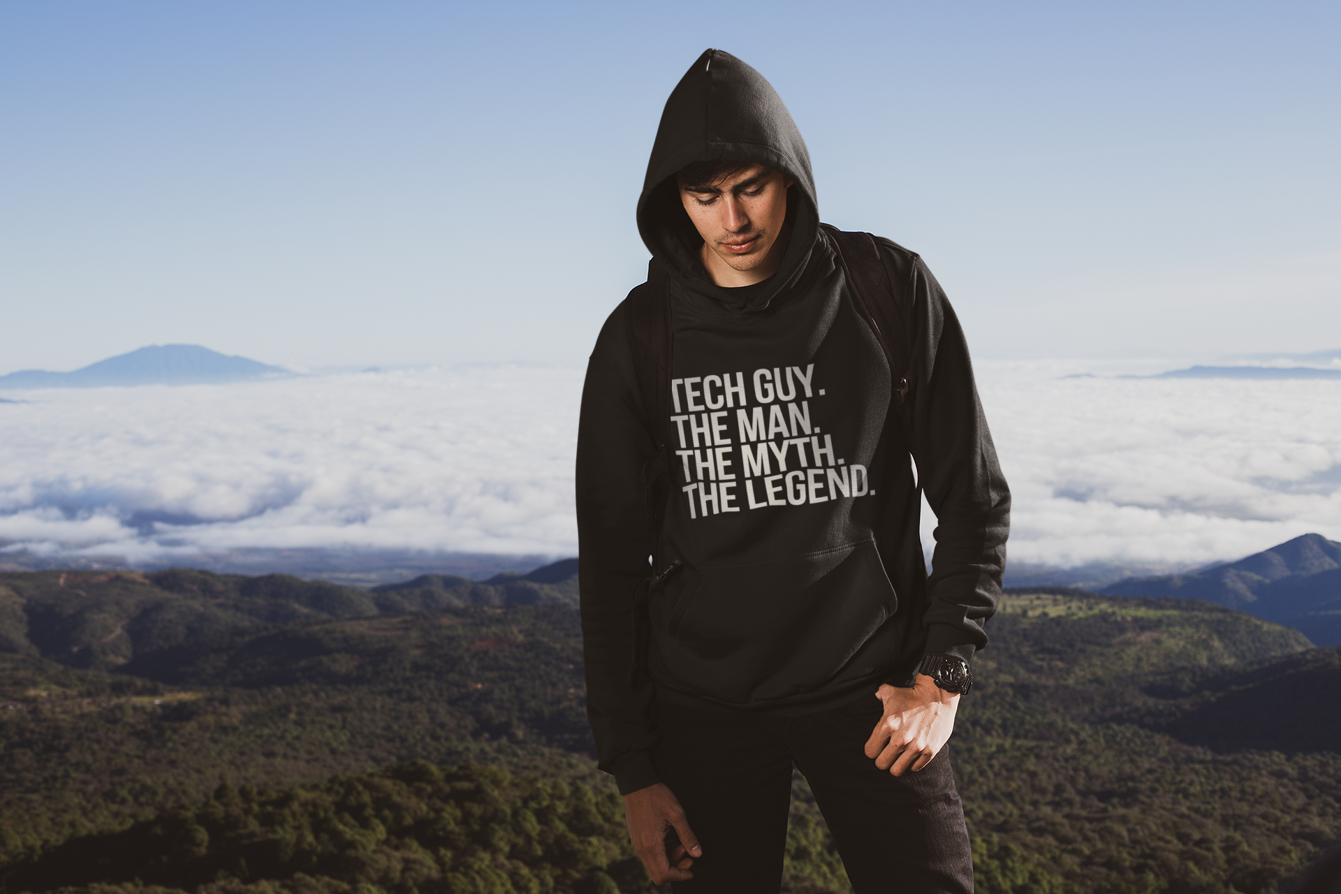 From summits to server rooms, our Tech Guy hoodie keeps you warm and ready for anything. 100% cotton on the outside, soft fleece on the inside—a perfect blend of comfort and resilience.